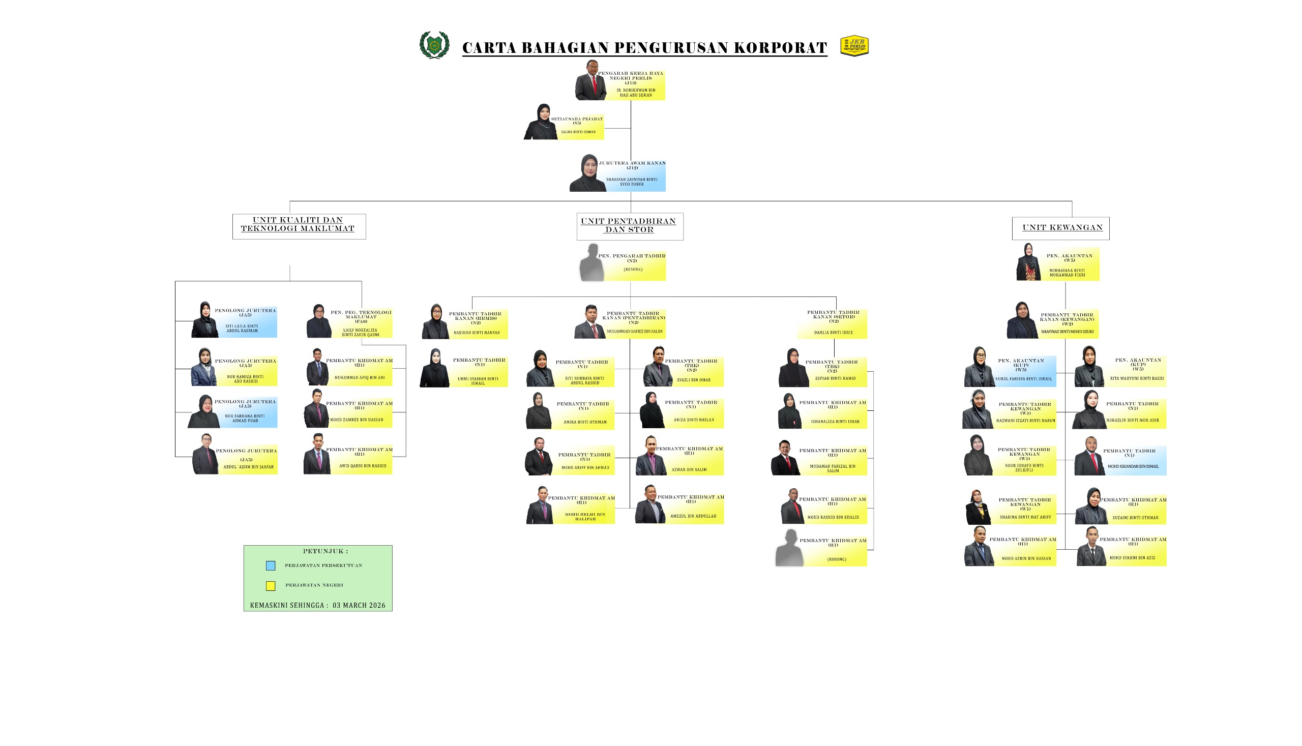 Setiap seksyen atau unit yang terdapat di bawah Bahagian Korporat memainkan peranan serta tanggungjawab yang tersendiri dan amat penting kepada Jabatan Kerja Raya Negeri Perlis dalam memberi perkhidmatan yang terbaik kepada rakyat atau orang awam di Negeri Perlis.